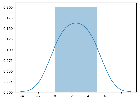 | import matplotlib.pyplot as plt import seaborn as sns sns.distplot([0, 1, 2, 3, 4, 5]) plt.show() |