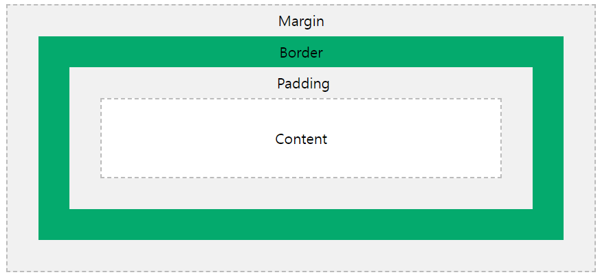 CSS 박스 모델은 본질적으로 모든 HTML 요소를 감싸는 박스이다. margin, border, padding및 실제 콘텐츠로 구성된다. 아래 이미지는 상자 모델을 보여준다: