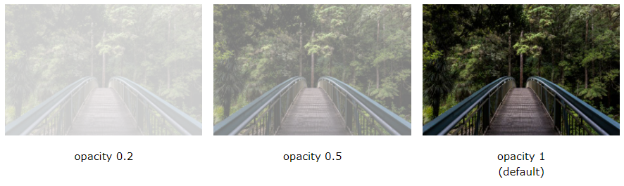 opacity 속성은 0.0 - 1.0 사이의 값을 사용할 수 있다. 값이 낮을수록 투명도가 높다: