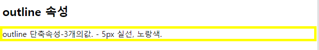 outline 속성에 5px solid yellow 값을 설정하여 아웃라인에 5px 실선과 노랑색을 설정한다. 결과 화면은 아래 그림과 같다.