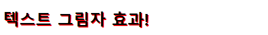 | <!DOCTYPE html> <html> <head> <style> h1 { text-shadow: 2px 2px red; } </style> </head> <body> <h1>텍스트 그림자 효과!</h1> </body> </html> |