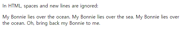 페이지가 표시될 때, 브러우저는 추가 공백과 줄을 자동으로 제거한다.