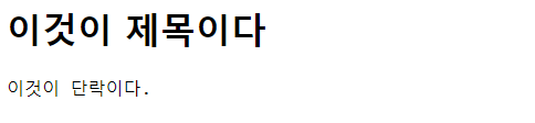 | <h1 style="color:blue;">이것이 제목이다.</h1> <p style="color:red;">이것이 단락이다.</p> |