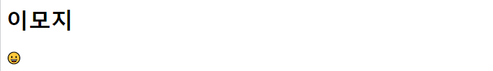 <!DOCTYPE html> <html> <head> <meta charset="UTF-8"> </head> <body> <h1>이모지</h1> <p>😀</p> </body> </html> |