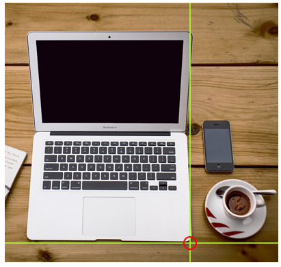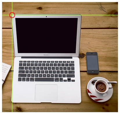 좌표 270,350은 왼쪽 여백에서 270픽셀, 위쪽에서 350픽셀에 위치한다: