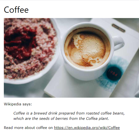 커피 이미지를 클릭하면 아래 페이지로 이동한다.