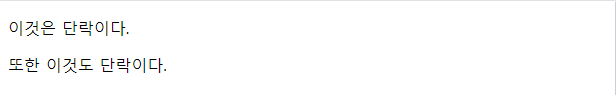 <!DOCTYPE html> <html> <body> <p>이것은 단락이다.</p> <!-- <p>이것은 단락이다 </p> --> <p>또한 이것도 단락이다.</p> </body> </html> |