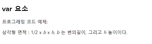 <var> 요소는 수학식 혹은 프로그램 변수를 정의한다.
