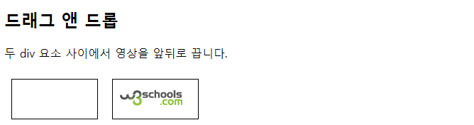 아래 w3schools.com 이미지를 사각형에 드래그앤드롭을 한 결과가 아래 그림이다.
