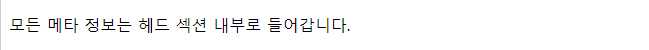 - <head> 요소는 <html> 태그와 <body> 태그 사이에 배치된다