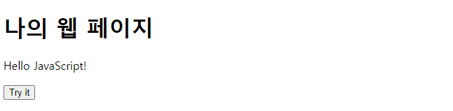 ![]() Try It 버튼을 클릭하면, '단락'에서 'Hello JavaScript!'가 표시된다. ![]() |