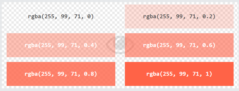 RGBA 색상 값은 알파 채널(불투명도)이 있는 RGB의 확장이다.