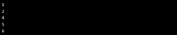 | i = 0 while i < 6: i += 1 if i == 3: continue print(i) |